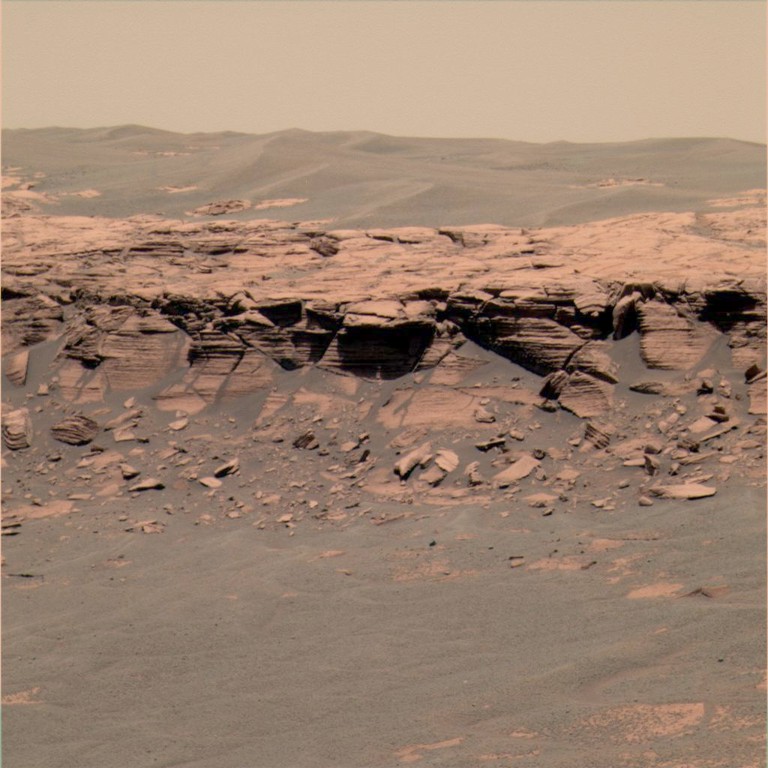 Abb. 8: der "Mogollon Rim" am 24. Februar 2006: der Kraterrand des Erebus Kraters weist eine deutliche Schichtstruktur auf