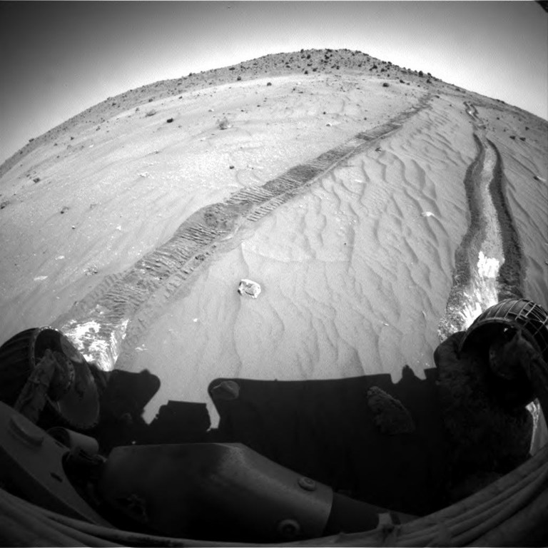 Zu allem Ungemach lag ein feinsandiges Gelände voraus, und der Rover musste aufpassen, sich nicht mit durchdrehenden Rädern tief in den losen Untergrund