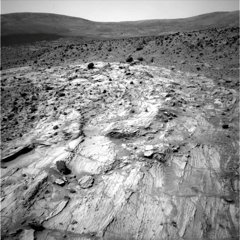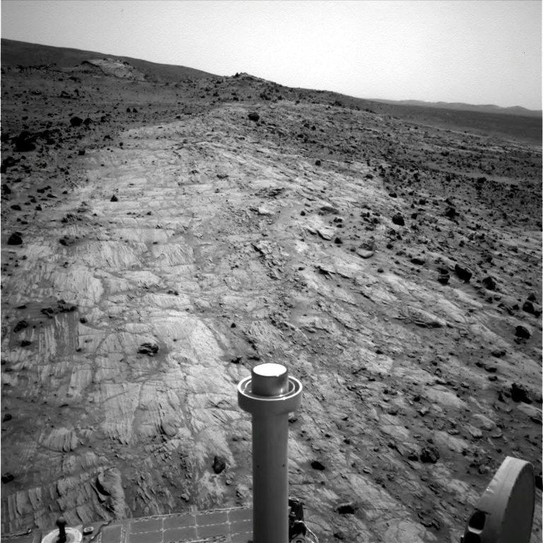 Spirit untersuchte zu diesem Zeitpunkt intensiv Felsbrocken aus verschiedenen Materialien und vermutlich auch verschiedener Herkunft. Nachdem sich der Rover in den vergangenen Tagen und Wochen um die östliche "Micheltree Ridge" gekümmert hatte, siehe vorherige Seite, kamen jetzt die Objekte an der "Home Plate" im Westen an die Reihe.