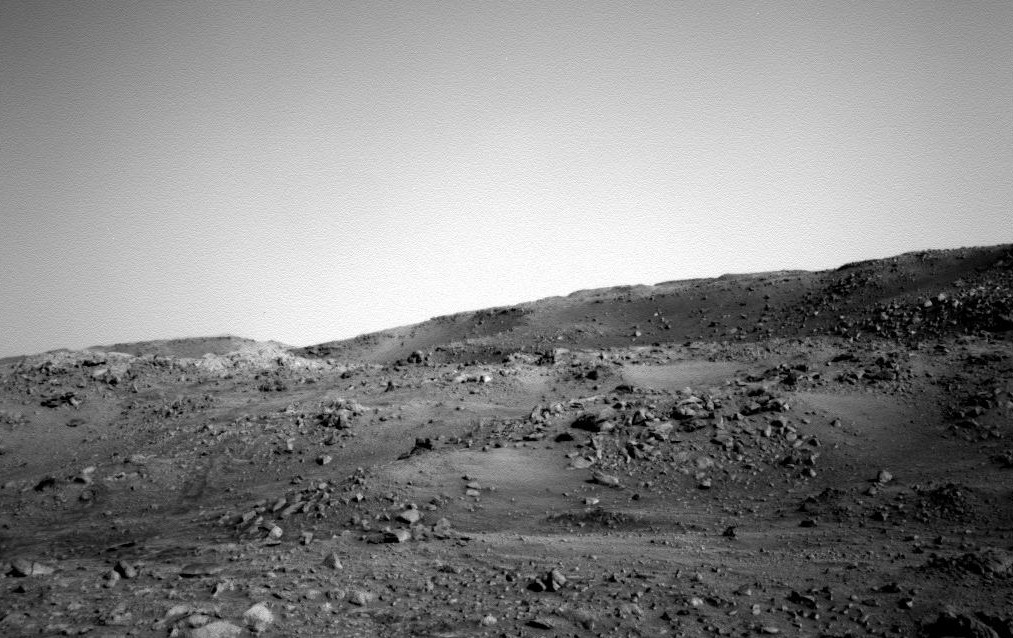 Am 18. Februar 2005 machte Spirit ein Foto von seinem vorläufigen Ziel in den Columbia-Bergen: das "Tennessee Valley" genannte kleine Tal im Hintergrund mit dem Aussichtspunkt "Larry's Lookout" (siehe oben in der Übersichtskarte) vorne rechts im Vordergrund.