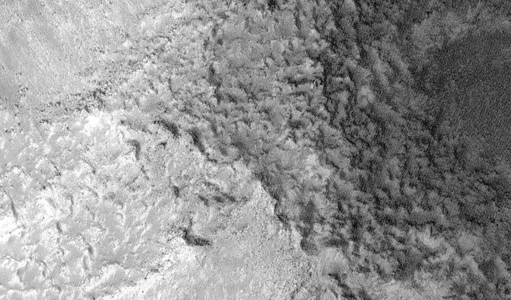 Anfang April 2007 überflog MRO die Region Cydonia, eine Ebene mit großen, steil aus der Ebene herausragenden Tafelbergen. Der wohl berühmteste Tafelberg aus dieser Region ist "das Marsgesicht", der auf in den 70er Jahren des vorigen Jahrhunderts erstmals veröffentlichten Fotos der Viking-Sonden bei grober Auflösung Ähnlichkeiten mit einem menschlichen Gesicht aufwies und zu allerlei Spekulationen Anlass gab. Diese Region gehört wohl zu den meistfotografierten Gegenden des Mars, so z.B. hier eine relativ neue Farbbilderserie der europäischen Sonde Mars Express aus der Cydonia-Region aus dem September 2006 oder die originalen Aufnahmen der Viking-Sonden aus dem Jahr 1976 und von Mars Global Surveyor aus dem Jahr 1998.
