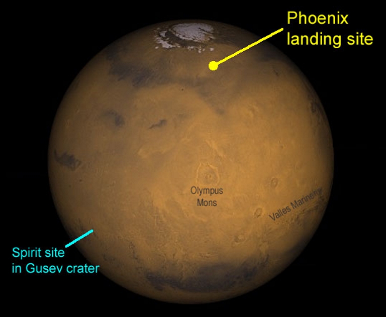| Abb.5: Phoenix - Landeort auf dem Marsglobus |
